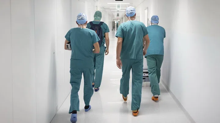 Tge capita cun il persunal da l'ospital da Samedan