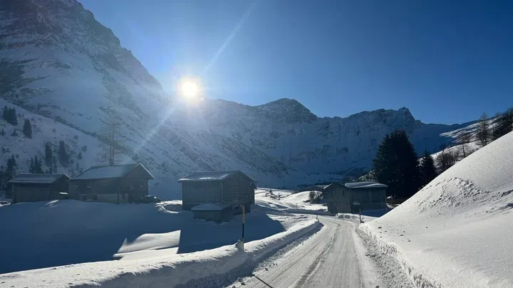 Naiv e glatsch cuvernan Thalkirch, e mes flad vegn sco in nivel or da mia bucca. Igl è fraid, il sulegl n'ha anc betg cuntanschì questa val. Las chasas qua èn situadas lunsch ina ord l'autra – e mo ina via stretga, gist avunda lada per in auto da posta, maina tras la val. Mia finamira è la loipa da Thalkirch, pia vom jau per lung da la via, ils mauns en satg.