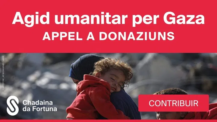 La Chadaina da Fortuna gida la populaziun civila en Gaza. Ensemen cun la SRG SSR vegn rimnà donaziuns per gidar. Tschientmillis persunas èn dependentas d’agid. Mintga donaziun gida da salvar vitas e da dar perspectivas.