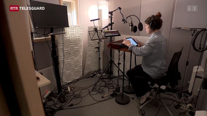 Las paraids da la cabina da registraziun èn isoladas cun mattas da gumma alvas. Tge che para sin l'emprima egliada in pau improvisà, fa ch'i tuna bain. Durant la registraziun sesa Olivia Spinatsch sin ina sutga da biro, ella porta uregliers e sin l'autezza da la sia bucca è montà in microfon professiunal.